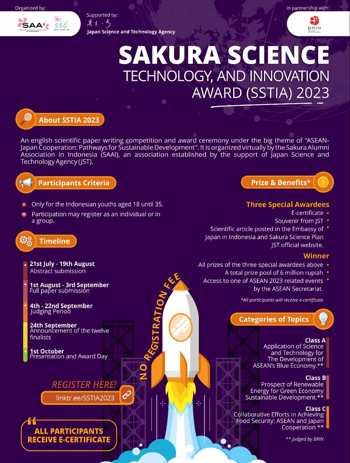 Informasi lebih terinci tentang Lomba penulisan, SAAI, dan SSTIA bisa diakses di: http://linktr.ee/SSTIA2023