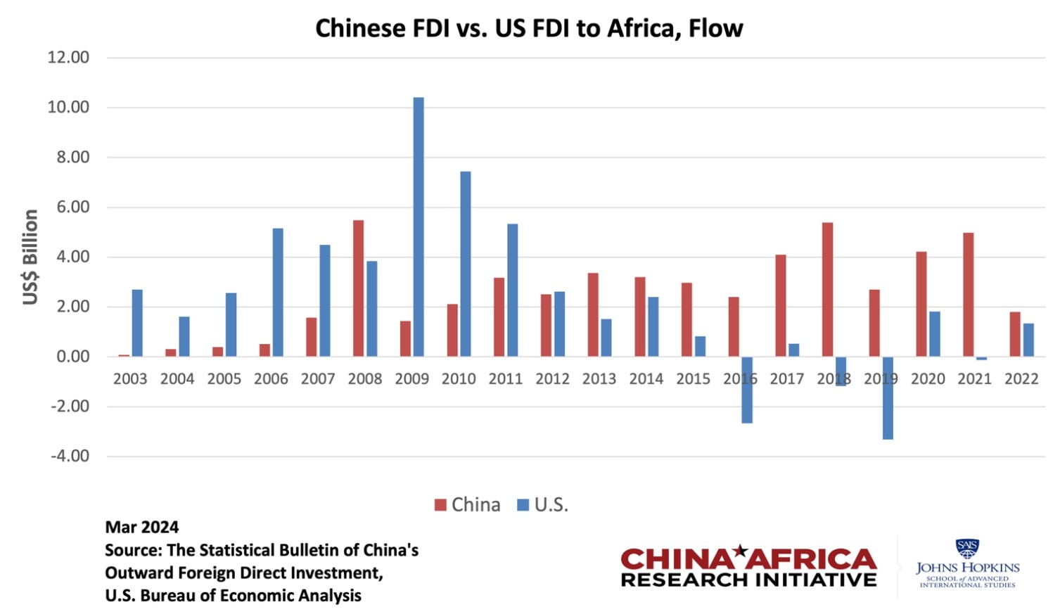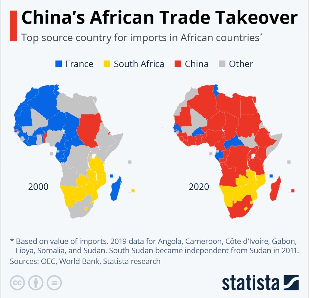 Bahkan untuk seluruh Afrika, sejak 2012 investasi China telah mengambil alih dominasi Amerika.