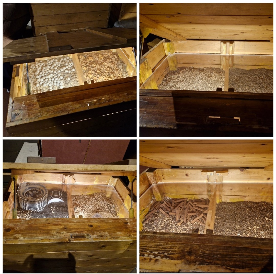 – Lemari obatnya yang berisi salep, bedak, minyak obat, perban dan peralatan bedah (gergaji amputasi). Bisa dibayangkan sakitnya saat itu kalau harus amputasi, digergaji tanpa anestesi, yang baru ditemukam tahun 1846.