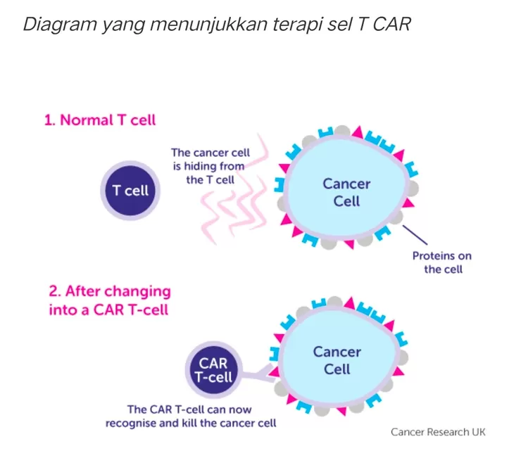 – Ketika CAR T-cell mengenali sel kanker, maka sistem kekebalan akan mereproduksi CAR T-cell.