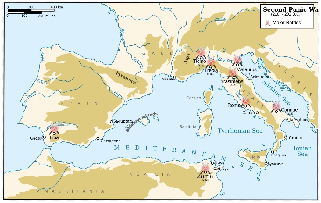 ● 209 SM : Komandan Romawi yang baru Publius Scipio Africanus (27 tahun) menguasai Carthago Nova, pangkalan utama Kartago.