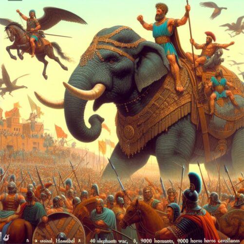 ▪︎ 9.000 kavaleri, termasuk 40 ekor gajah.
