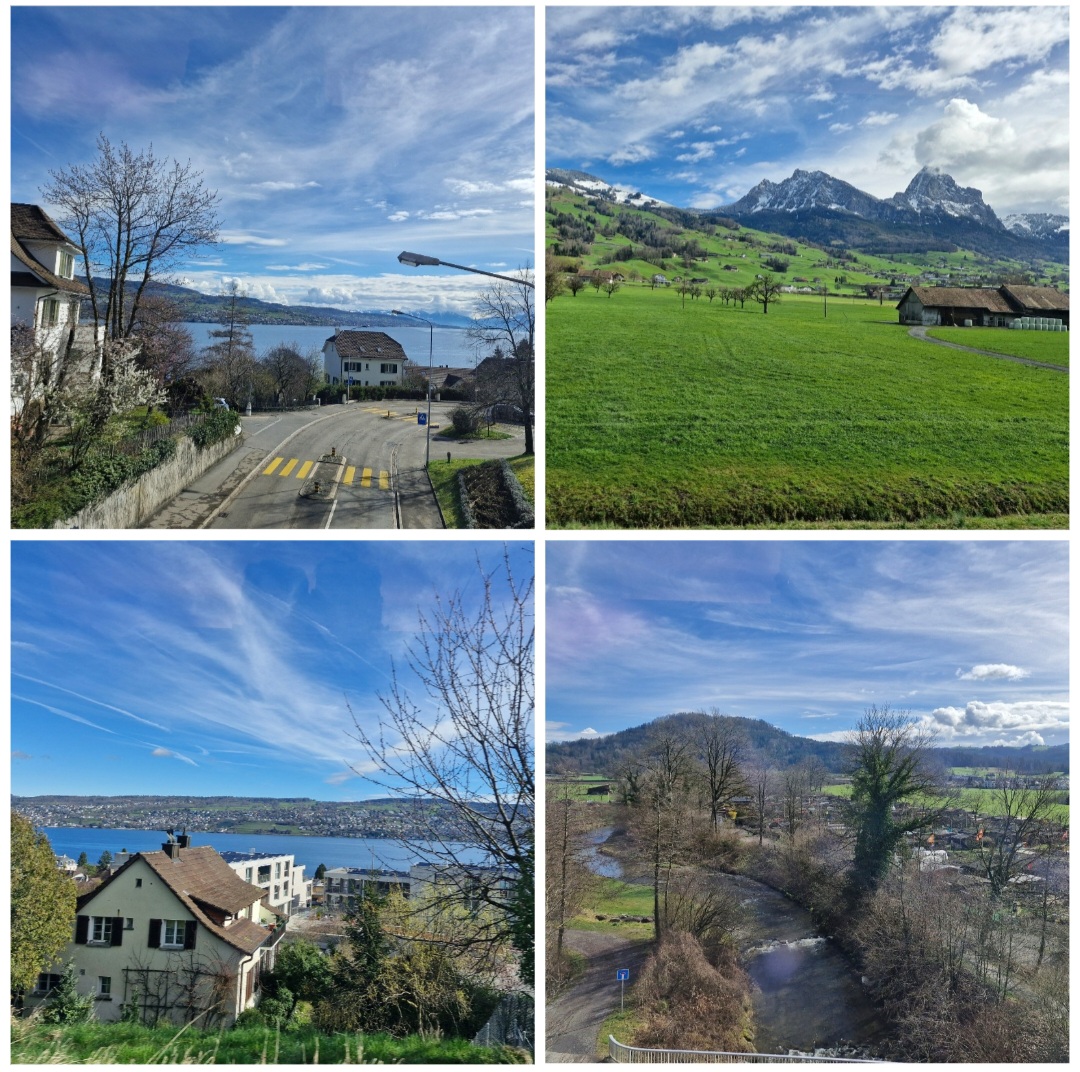Dari Zürich ke Milan menembus pegunungan Alpen. Indah sekali pemandangannya. Gunung gunung curam menjulang bersalju, sungai sumgai dan danau danau nan bening, padang rumput hijau, langit biru, semuanya bersih rapi teratur.