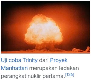 Uji coba bom atom Trinity, yang mekanisme kerjanya bisa disimak di sini :