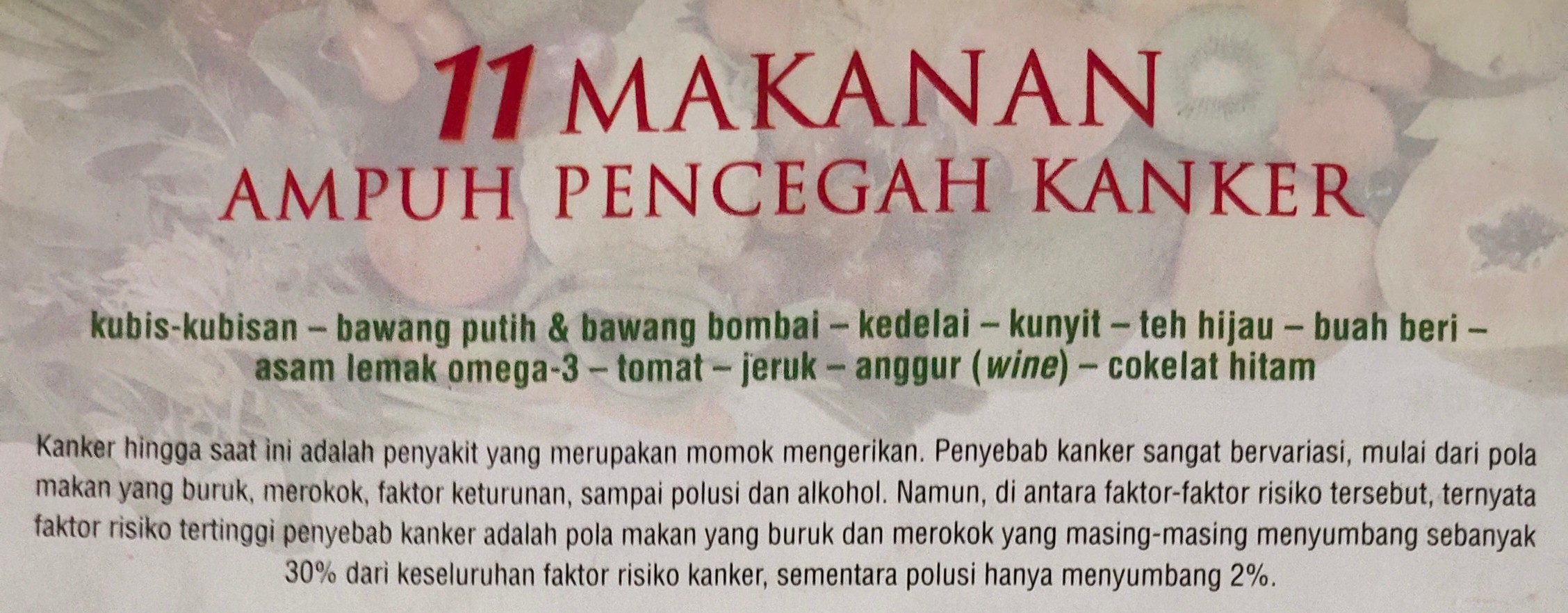 Aku merasa khawatir akan genetika dalam tubuhku. Aku segera baca banyak literatur mengenai pencegahan kanker. Akhirnya ketemulah buku yang mudah dimengerti & dipraktekkan.