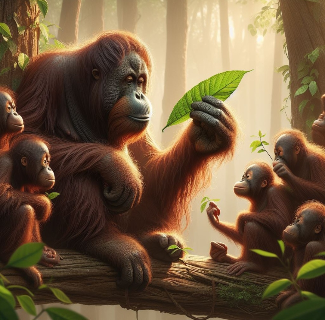 - Mungkin telah mempelajari perilaku tersebut dari Orangutan lain.