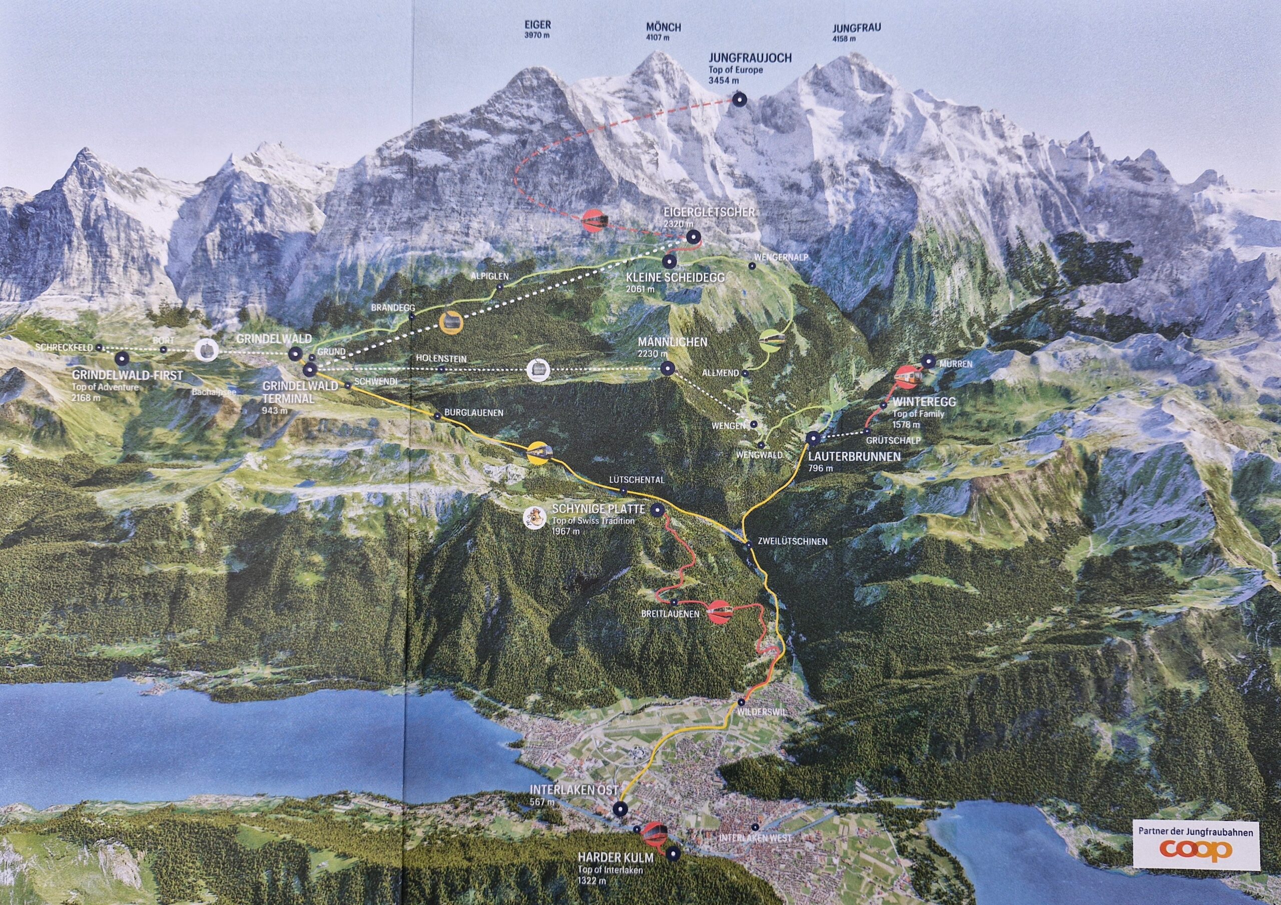 Kereta kami berangkat dari stasiun Paris jam 06.15 dengan tujuan akhir di kota Interlaken Swiss. Negara Swiss terletak di antara Perancis, Jerman, Austria & Italia. Sedangkan Interlaken adalah kota kecil yang diapit 2 danau di lembah antara 2 pegunungan Alpen. Ketinggian Interlaken 560 meter dpl. Namun dalam jarak 20 km, puncak pegunungan sudah berketinggian 4.100 meter dpl. Sangat terjal dan puncaknya selalu tertutup salju. Lokasi yang sangat baik untuk bermain Sky.