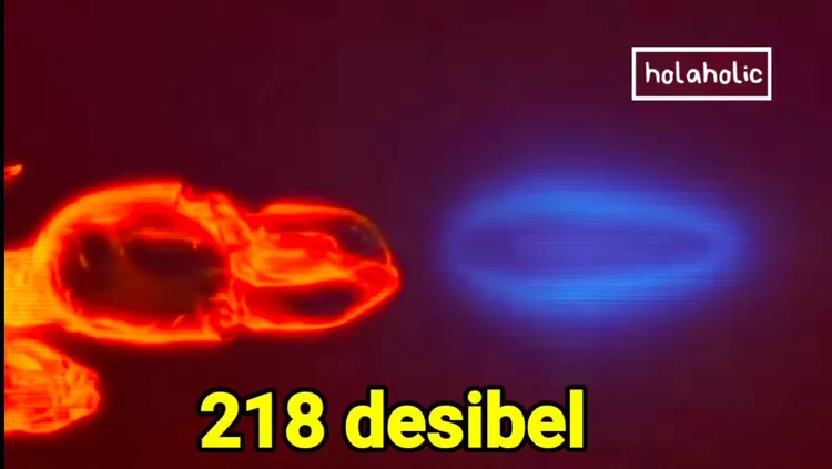 • Ledakan keras yang menghasilkan suara 218 dB. Suara ini jauh lebih lebih keras dari ledakan pistol yang hanya ±160 dB.